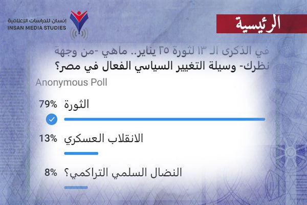 "مقياس" رأي لـ"إنسان للإعلام": 79% من الجمهور يؤيدون ثورة شعبية في مصر